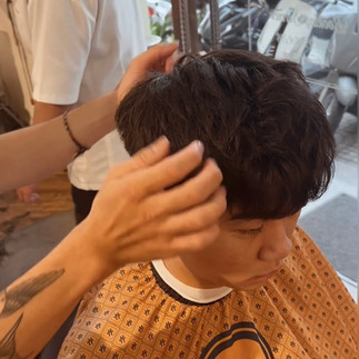 Cùng Highfive xem qua tóc dài và sau khi được cắt layer khác nhau như thế nào sau khi barber Thái tạo kiểu nhé! Bắt đầu bằng việc phân chia khối tóc, phần nửa đầu dưới ngắn hơn chuyển mềm đến phần chóp và mái giữ nguyên độ dài.